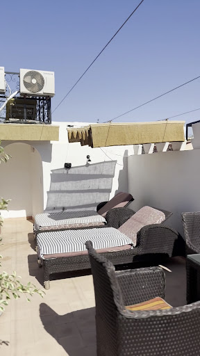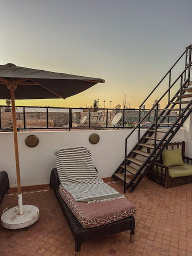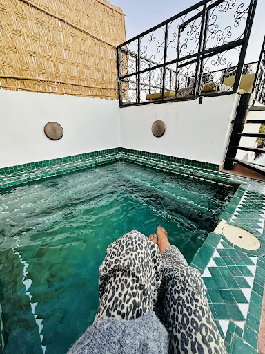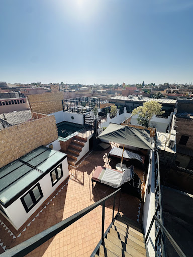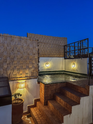 Jedes der Zimmer hat sein eigenes Bad mit Dusche. Ein Sitzpool im Patio ermöglicht eine willkommene Erfrischung an heissen Tagen. Auf der Dachterrasse finden Sie einen beheizten Pool und bequeme Sonnenliegen für gemütliche Stunden. Unter der überdachten Pergola oder in den gemütlichen Lounge-Bereichen geniessen Sie Ihr Frühstück, ein romantisches Dinner, oder einen marokkanischen Tee mit Gebäck.
